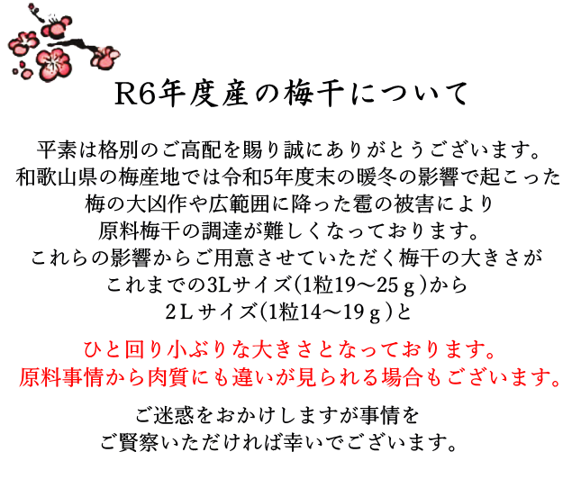 お子様からご年配の方まで幅広く好まれる梅干です。