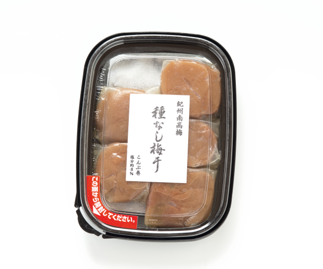TOP梅干 紀州南高梅 こんぶ巻梅 種なし梅 K・Mプラムセレクト人気の「こんぶ巻梅」の種を抜いちゃいました! 種を飲み込んでしまう心配もありません! お菓子のように乾燥させたものではなく、梅干の食感そのままに、 種だけを取り除いてあります。 北海道産真昆布を使用し、 ひと粒づつ丁寧に包んでいます。 梅と昆布、互いの風味が移り、 この上ないまろやかで芳醇な味わいを醸し出しています。 紀州南高梅 はちみつ入り こんぶ巻梅 種なし梅 5粒 価格: ¥1,200 (本体 ¥1,111、税 ¥89) [ポイント還元 12ポイント~] 販売期間: 数量: 個 在庫: 在庫あり 在庫 在庫あり 返品についての詳細はこちら 商品番号 a3024 賞味期限 製造日より6ヶ月 内容量 5粒 包装形態 - 塩分 約8% 送料 別途 原材料名 梅、昆布、漬け原材料(食塩、糖類(砂糖、果糖ぶどう糖液糖)、還元水飴、蜂蜜)/調味料(アミノ酸等)、酸味料、、甘味料(ステビア)、酒精、ビタミンB1(原料の一部に小麦、大豆を含む) オススメ!関連商品 こんぶ巻梅 女松梅干 種なし梅 梅の年輪 種なし梅 梅富久良 種なし梅 北海道産真昆布で 包みました。 程よい酸味の種なし梅 女松葉エキス入り ハチミツ入りの種なし梅 上品な味わい 塩分控えめの種なし梅 まろやかな味わい >>詳細はこちら >>詳細はこちら >>詳細はこちら >>詳細はこちら