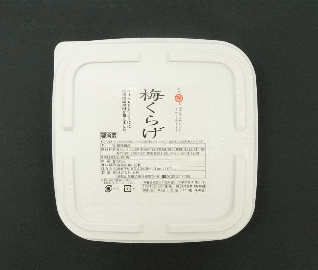 【季節限定品】食卓に旬の一品本当に美味しい時期に味わっていただくため、冬季限定で販売しています。 コリッとした食感のくらげと紀州産梅肉を独自製法で和えました。 |